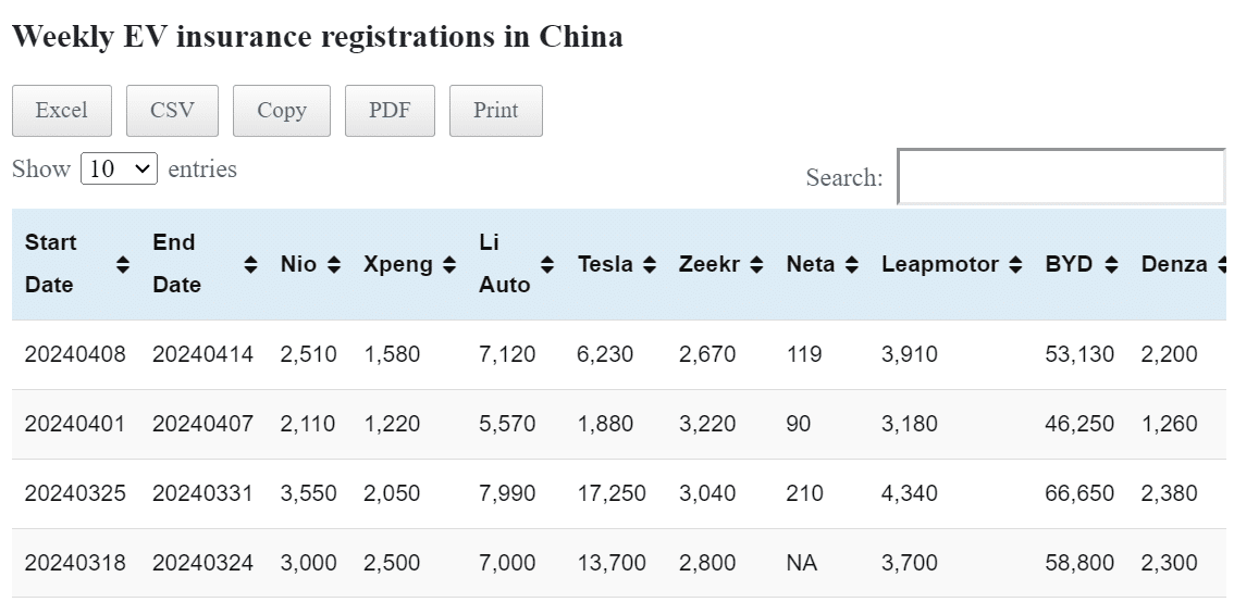 Weekly insurance registrations for vehicles of Nio, Xpeng, Li Auto, Tesla, Zeekr, Neta, and Leapmotor are included in this article.