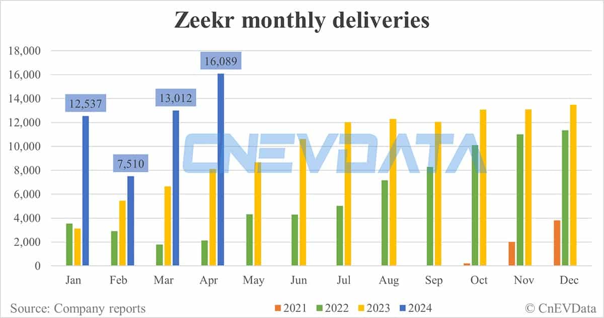 Zeekr deliveries in Apr: 16,089