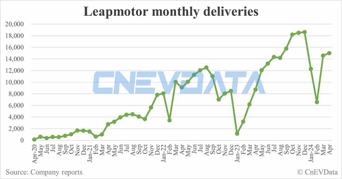 Leapmotor deliveries in Apr: 15,005