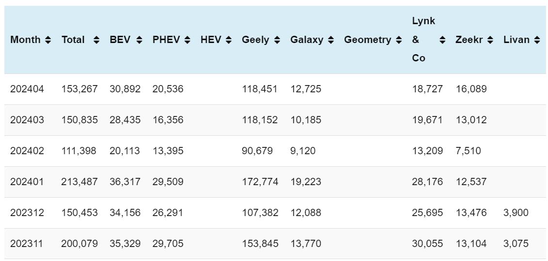 Geely sales in Apr: 153,267
