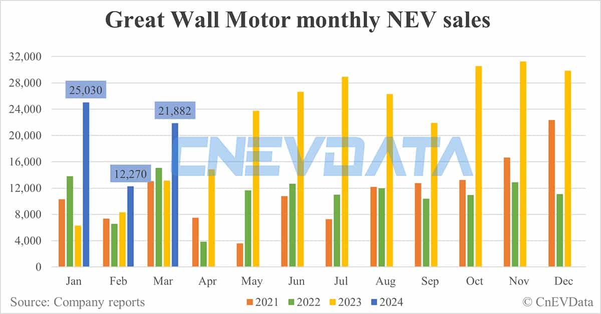 Great Wall Motor NEV sales in Mar: 21,882
