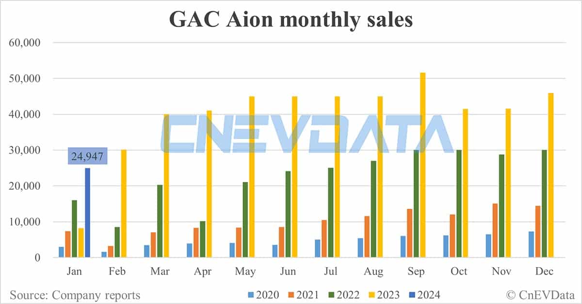 GAC Aion sales in Jan: 24,947