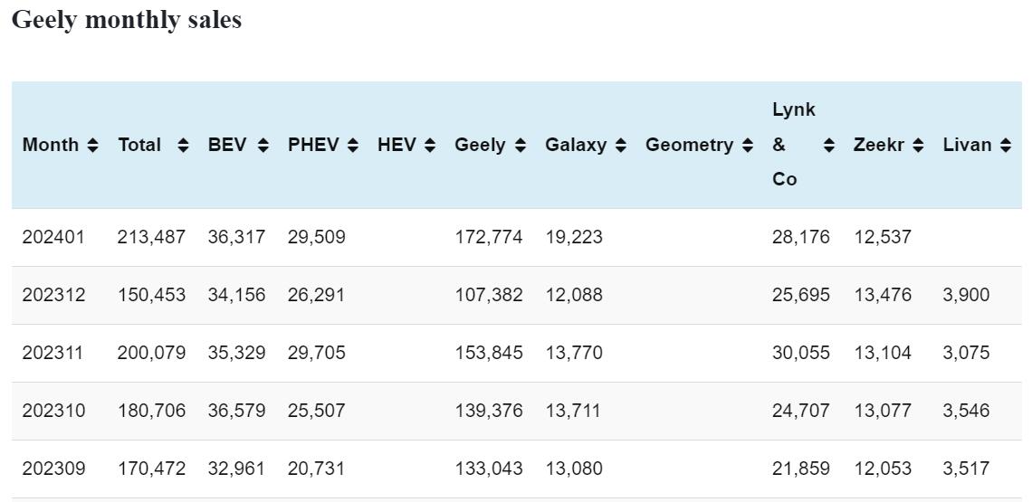 Geely sales in Jan: 213,487