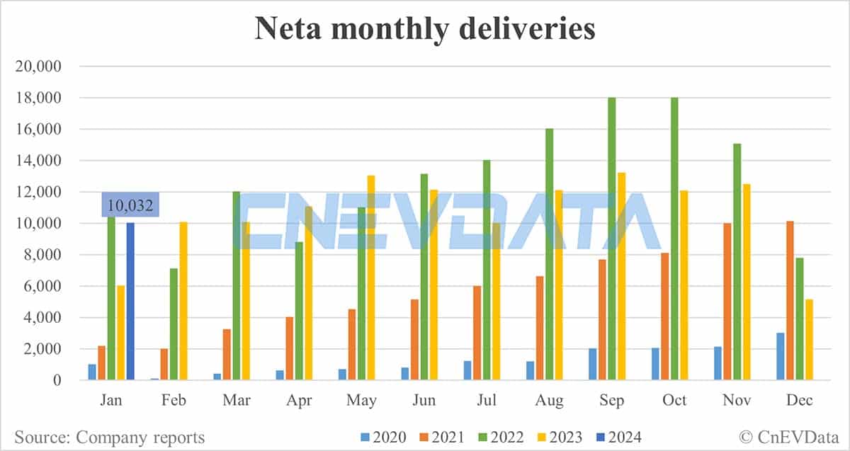 Neta's deliveries in January were up 66.76 percent year-on-year and up 95.37 percent from December.
