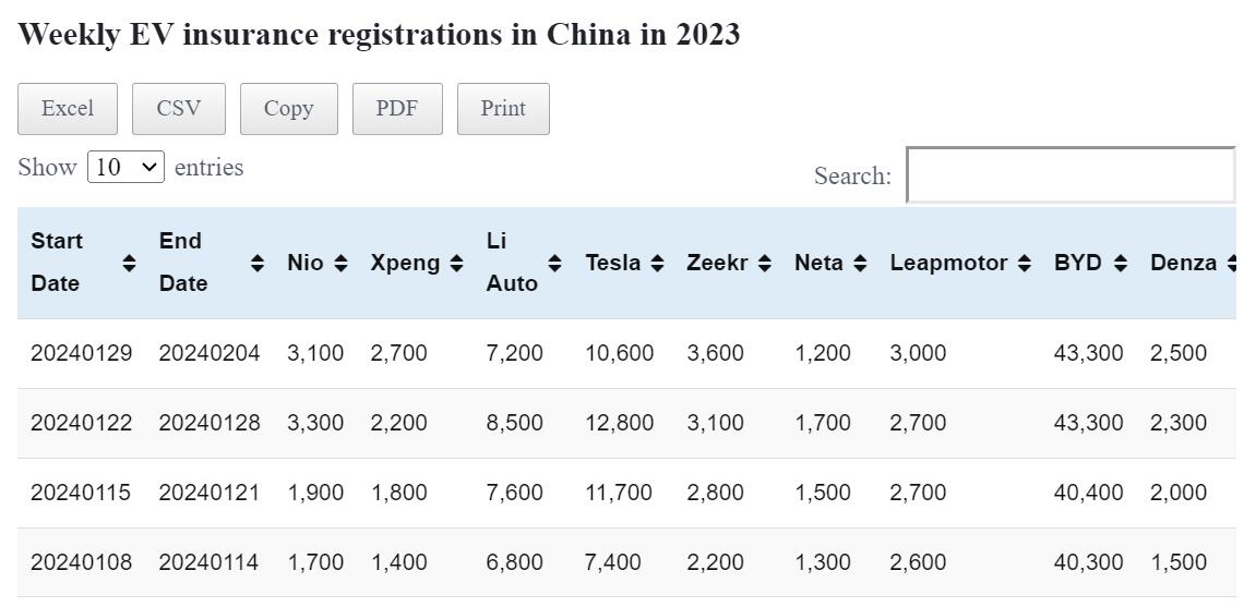 Data table: China EV weekly insurance registrations