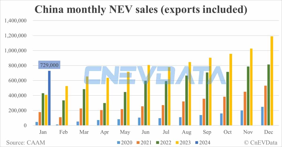 China Jan NEV sales data by CAAM: 729,000