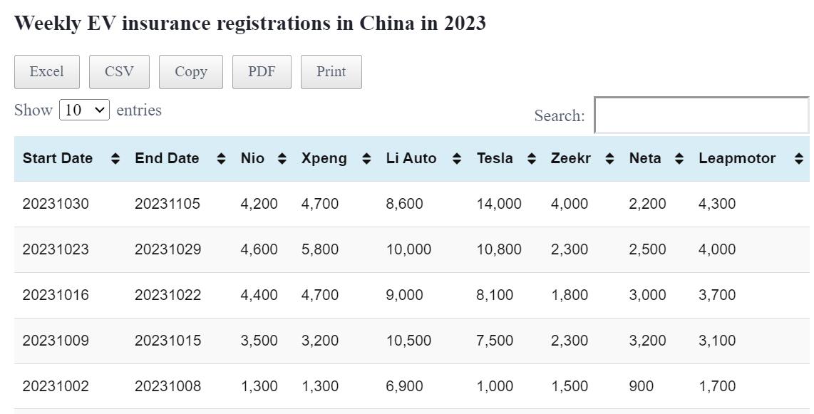 Data table: China EV weekly insurance registrations