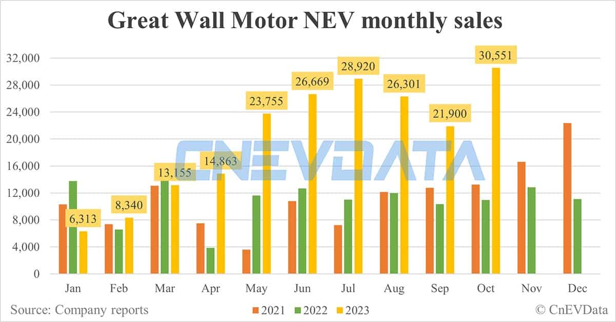 Great Wall Motor NEV sales in Oct: 30,551