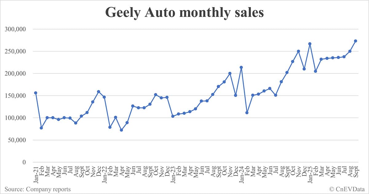 Geely Auto sales in Sept: 273,125