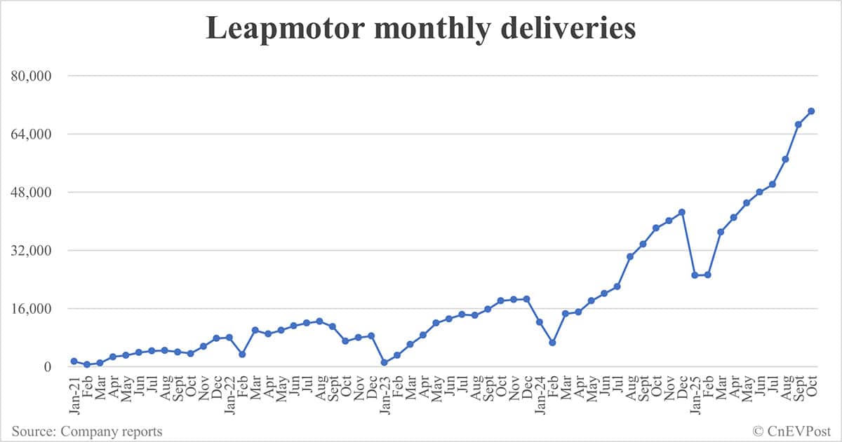 Leapmotor deliveries in Oct: 70,289