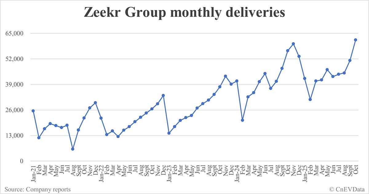 Zeekr Group deliveries in Oct: 61,636