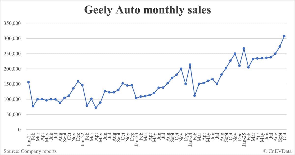 Geely Auto sales in Oct: 307,133