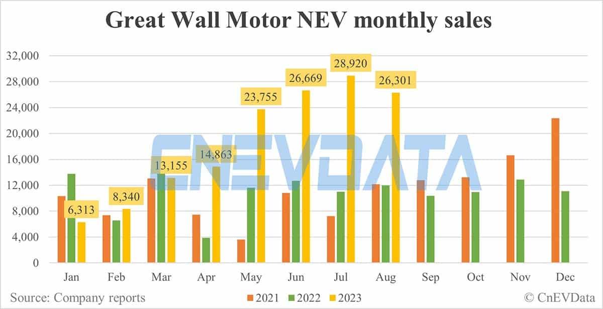 Great Wall Motor NEV sales in Aug: 26,301