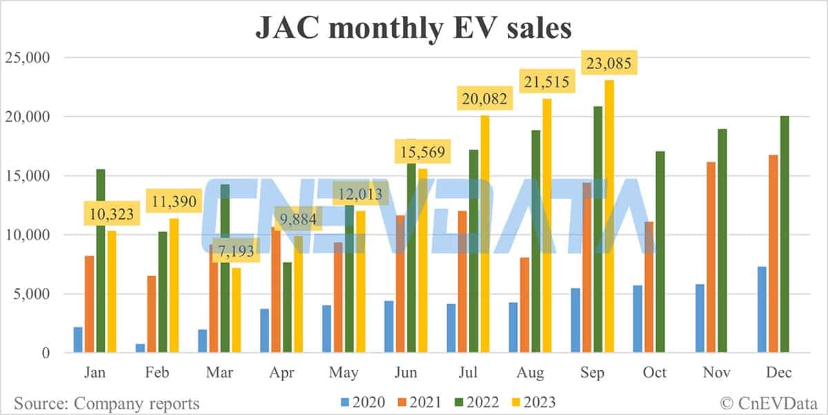 JAC EV sales in Sept: 23,085