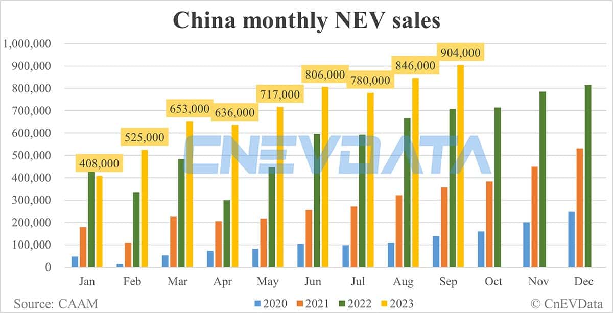 China Sept NEV sales data by CAAM: 904,000