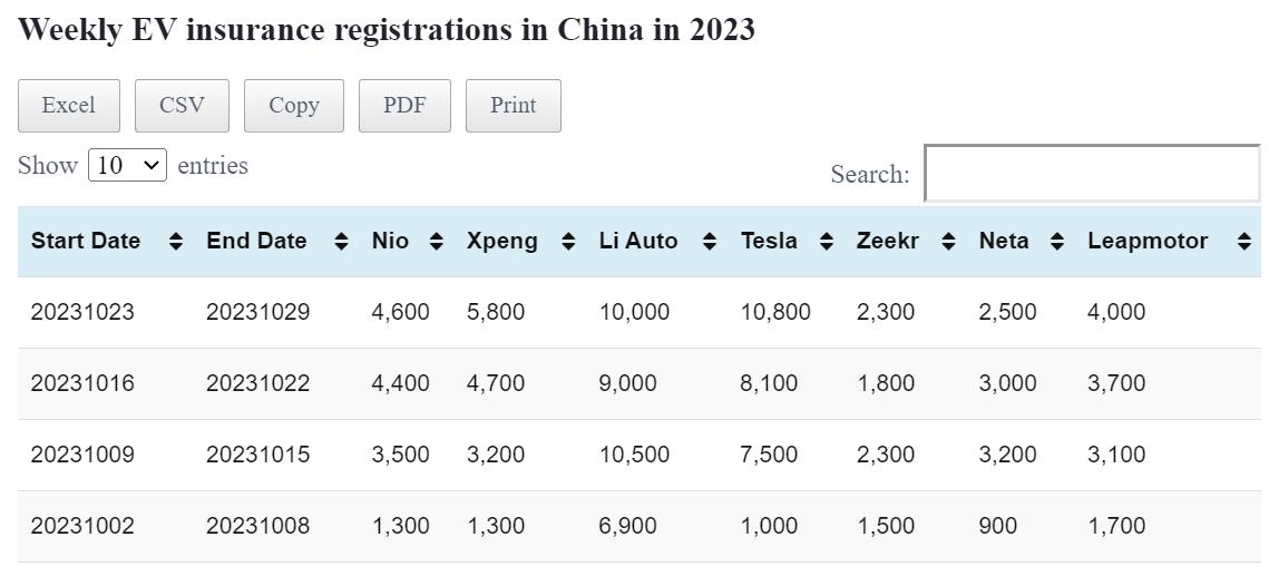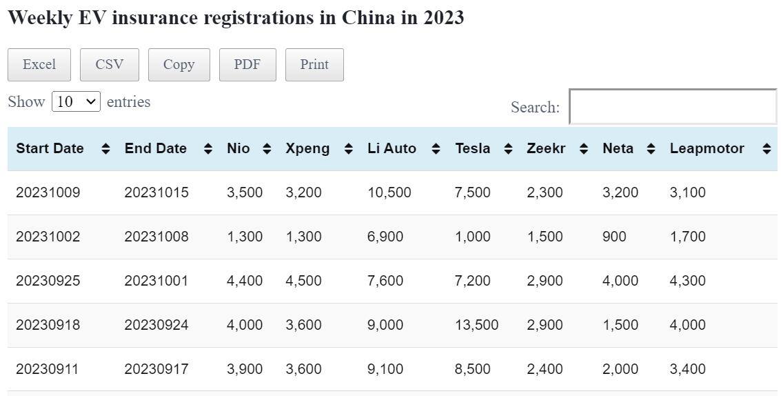 Data table: China EV weekly insurance registrations