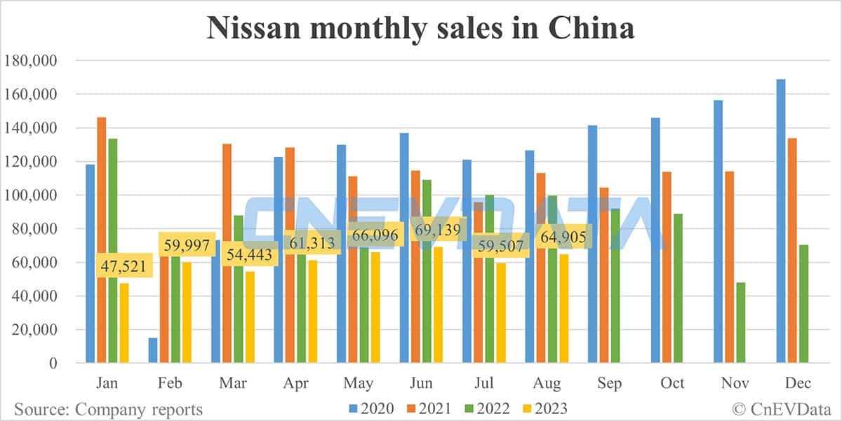 In the January-August period, Nissan sold 482,921 vehicles in China, down 35.25 percent year-on-year.