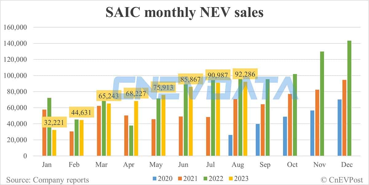 SAIC reported all-vehicle sales of 423,319 units in August, of which 102,646 were exported and sold at overseas bases.