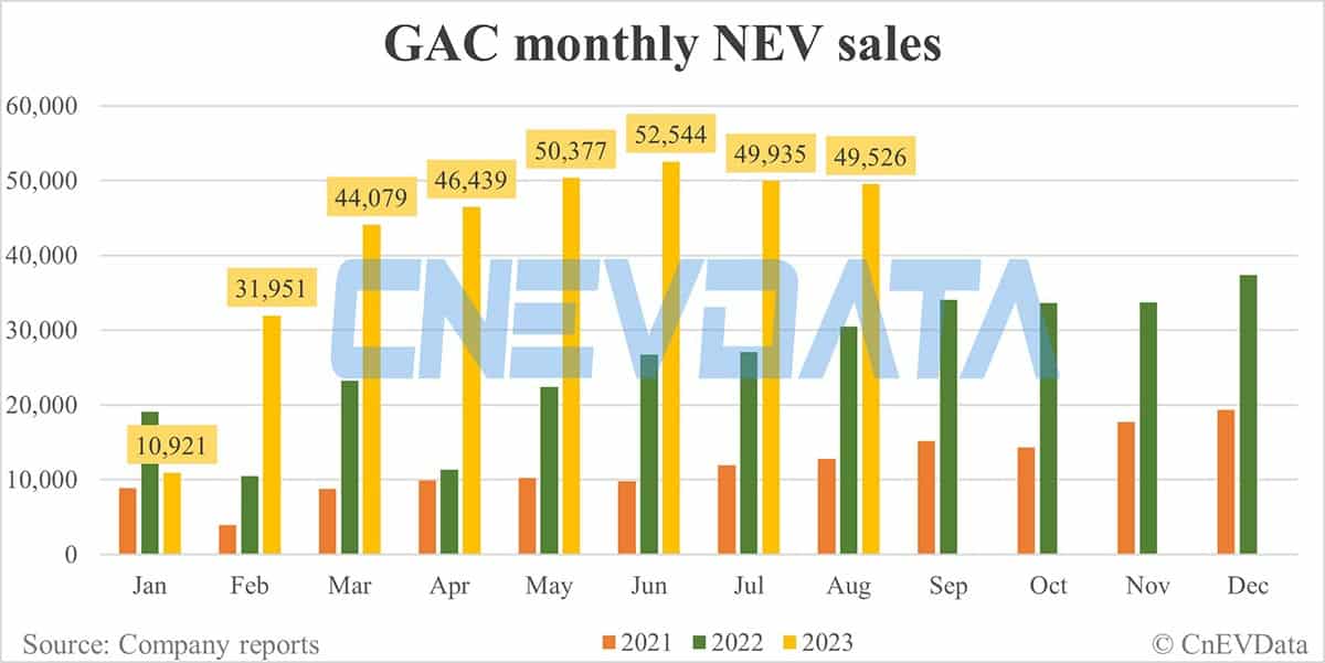 GAC's vehicle sales in August were 196,761 units, with NEVs contributing 25.17 percent.