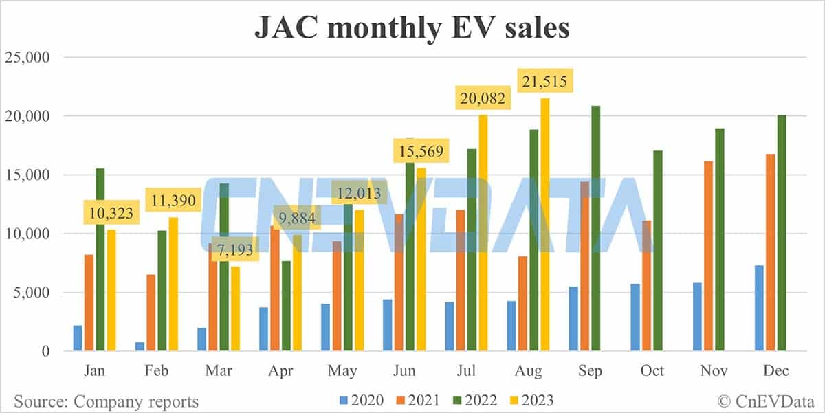 JAC sold 53,870 vehicles in August, including 13,048 exported.