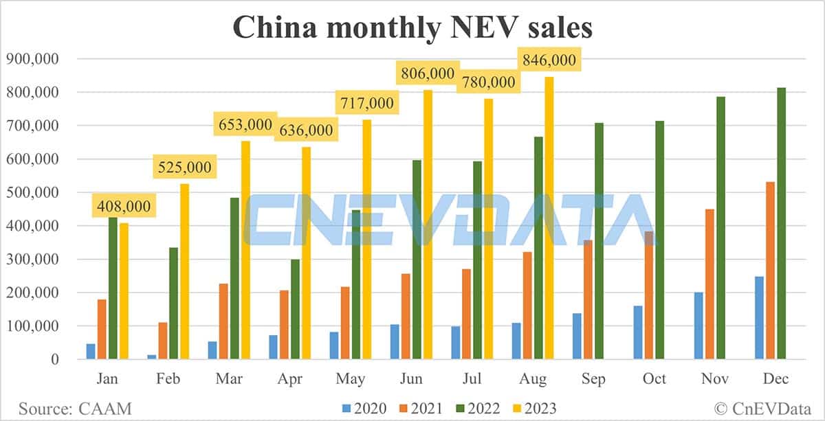 China's retail sales of NEVs from August 1 to July 31 stood at 698,000 units, up 32 percent year-on-year and up 9 percent from the same period last month.