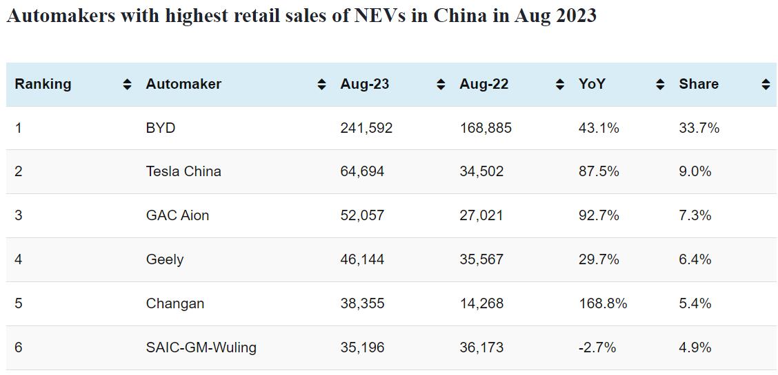 This article shares the CPCA's rankings of the best-selling car companies in China for August.