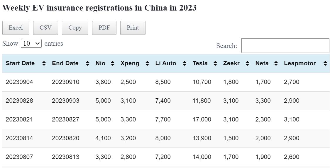 Weekly insurance registrations for vehicles of NIO, XPeng, Li Auto, Tesla, Zeekr, Neta, and Leapmotor are included in this article.