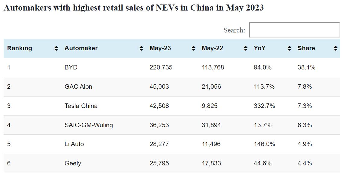 This article shares the CPCA's rankings of the best-selling automakers in China for May. Model-specific sales rankings are not available.