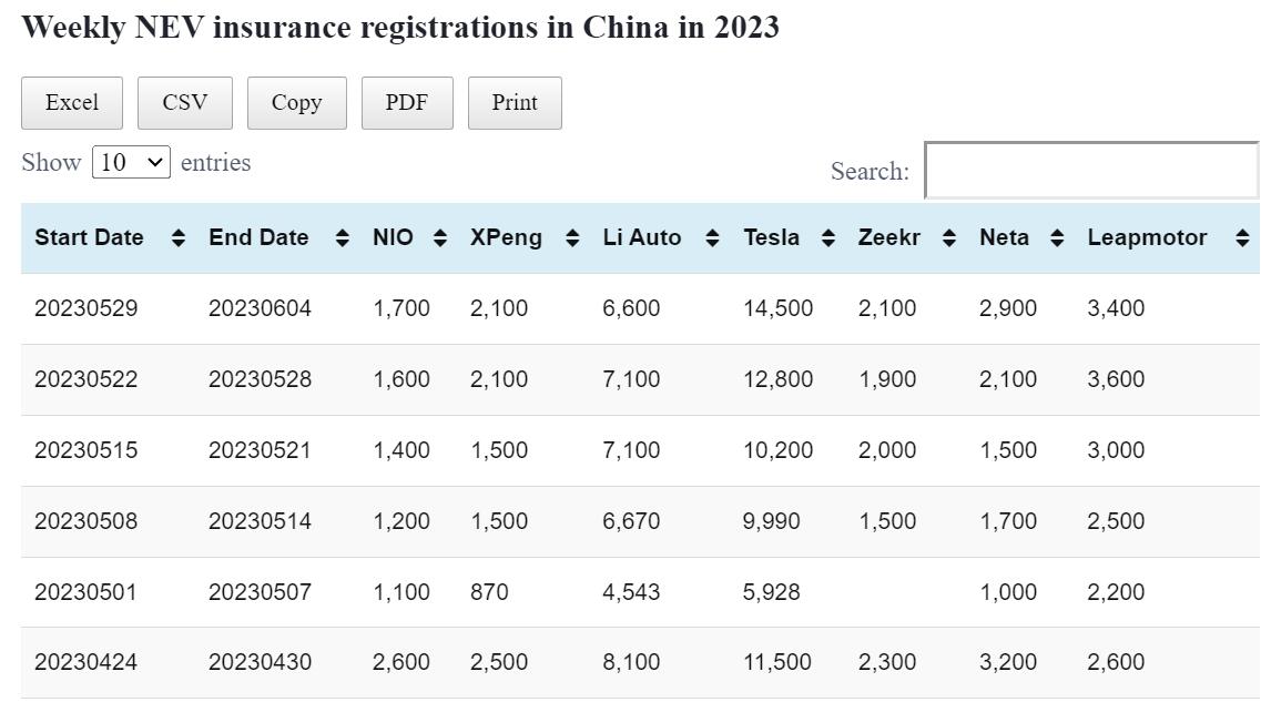 Weekly insurance registrations for vehicles of NIO, XPeng, Li Auto, Tesla, Zeekr, Neta, and Leapmotor are included in this article.
