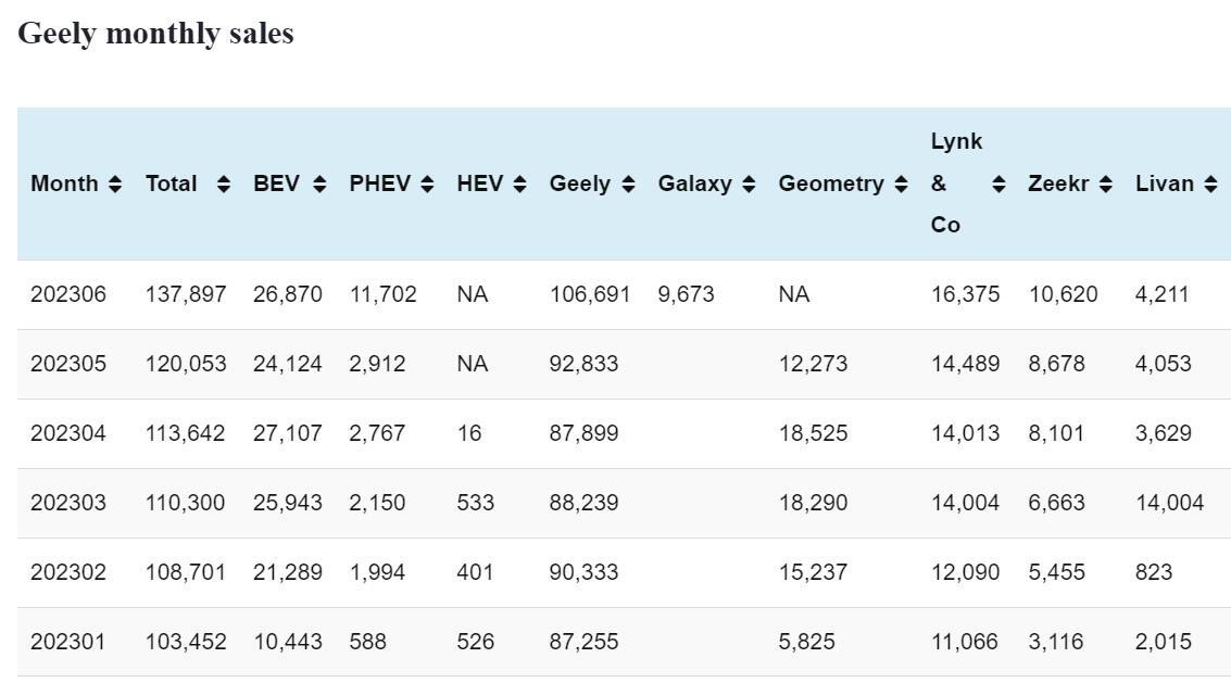 Geely sales in Jun: 137,897