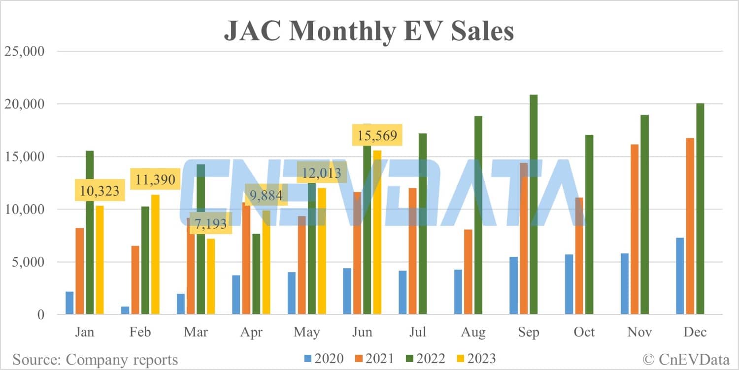 JAC EV sales in Jun: 15,569