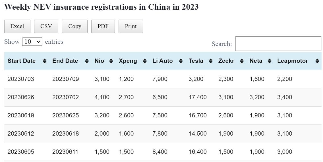 Data table: China NEV weekly insurance registrations