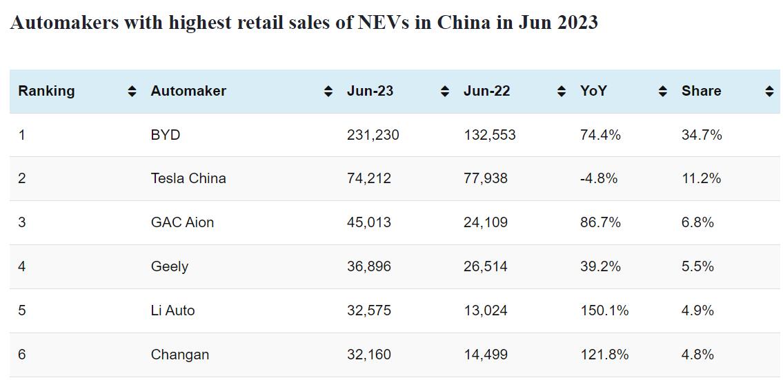 This article shares the CPCA's rankings of the top-selling automaker in China in June. Model-specific sales rankings are not yet available.