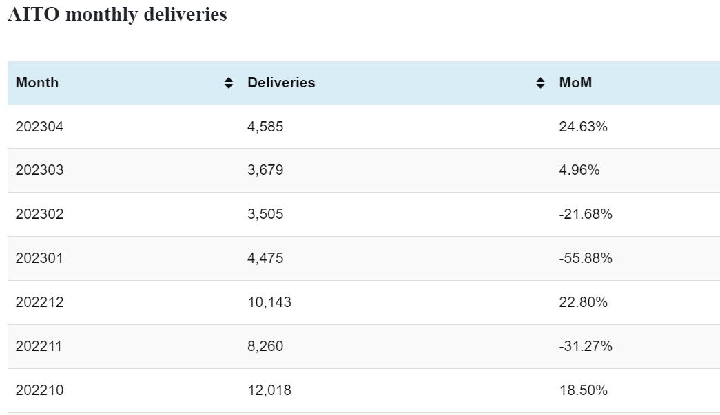 AITO deliveries in Apr: 4,585