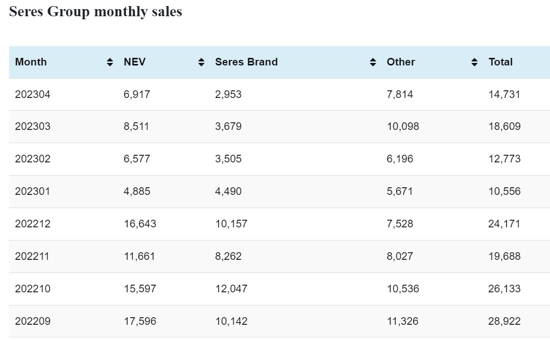 Seres Group NEV sales in Apr: 6,917