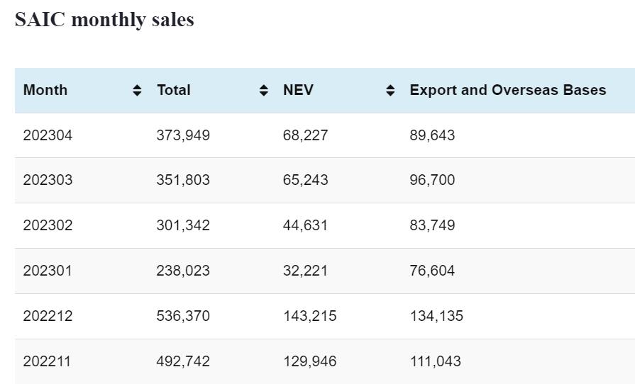 SAIC NEV sales in Apr: 68,227