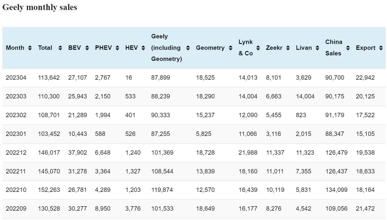 Geely sales in Apr: 113,642