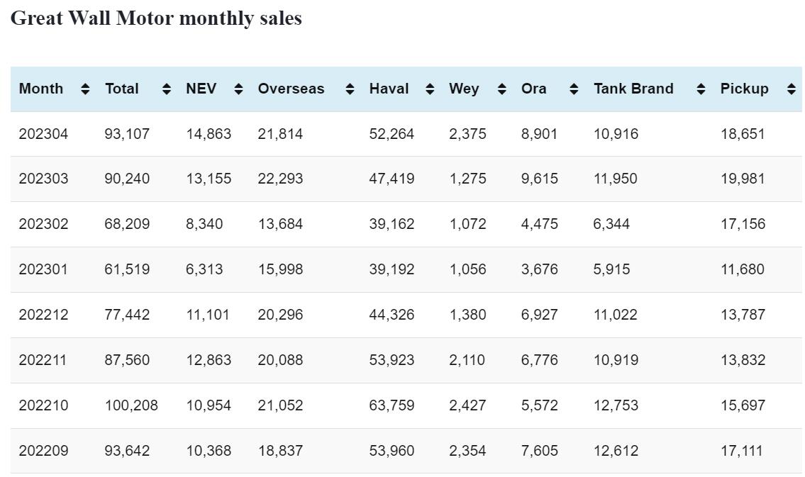 Great Wall Motor NEV sales in Apr: 14,863
