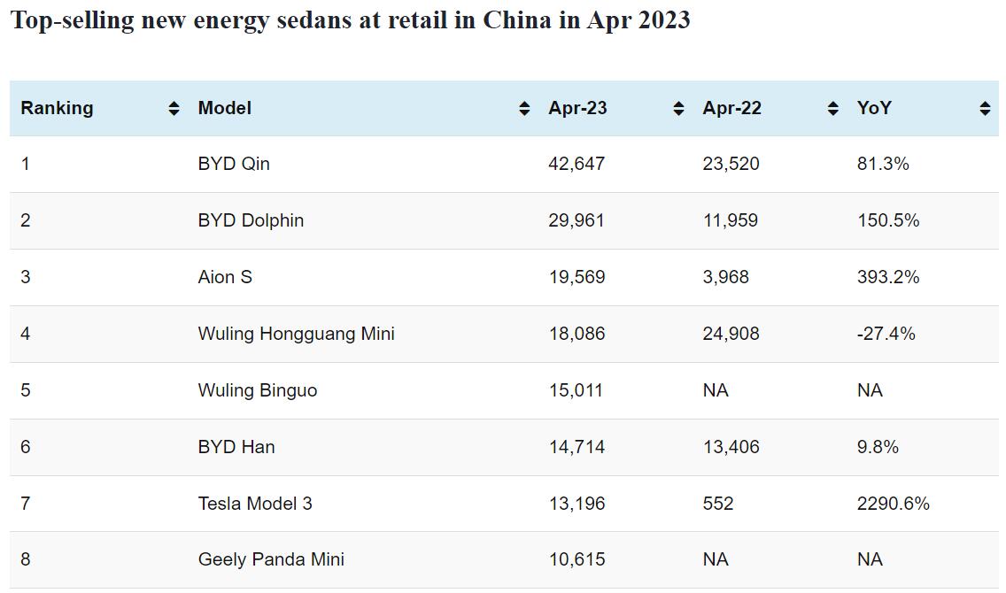 Full CPCA rankings: Top-selling models and automakers in China in Apr