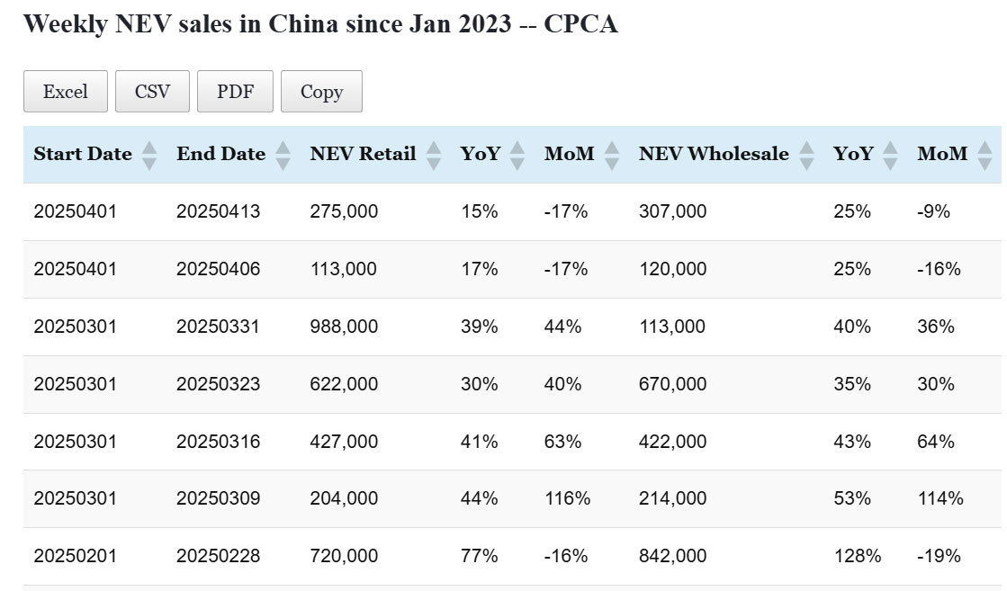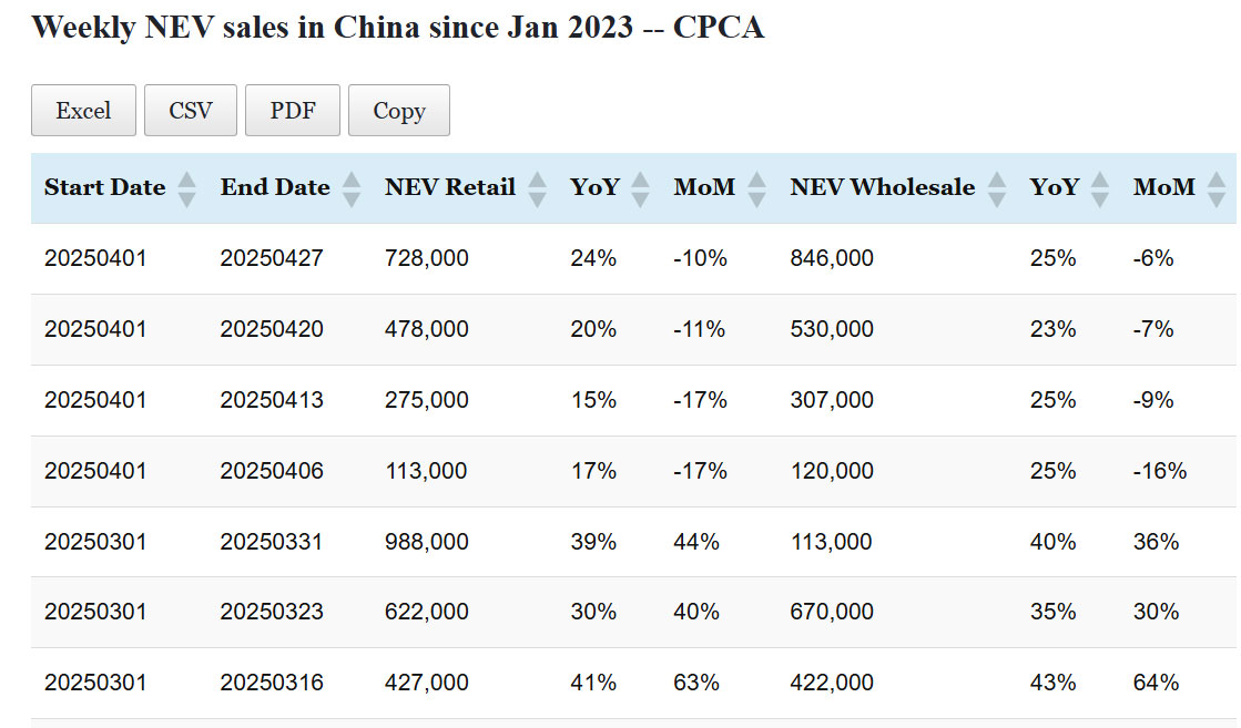 Data table: China NEV sales in Apr 1-27