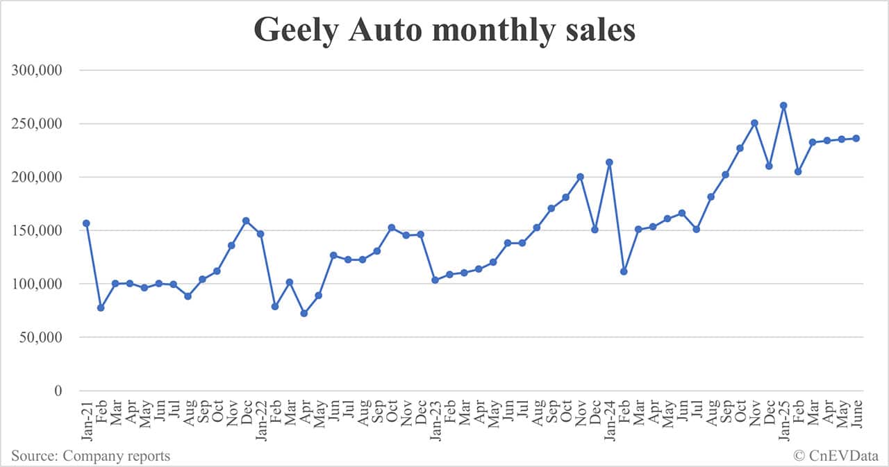 Geely Auto sales in Jun: 236,036