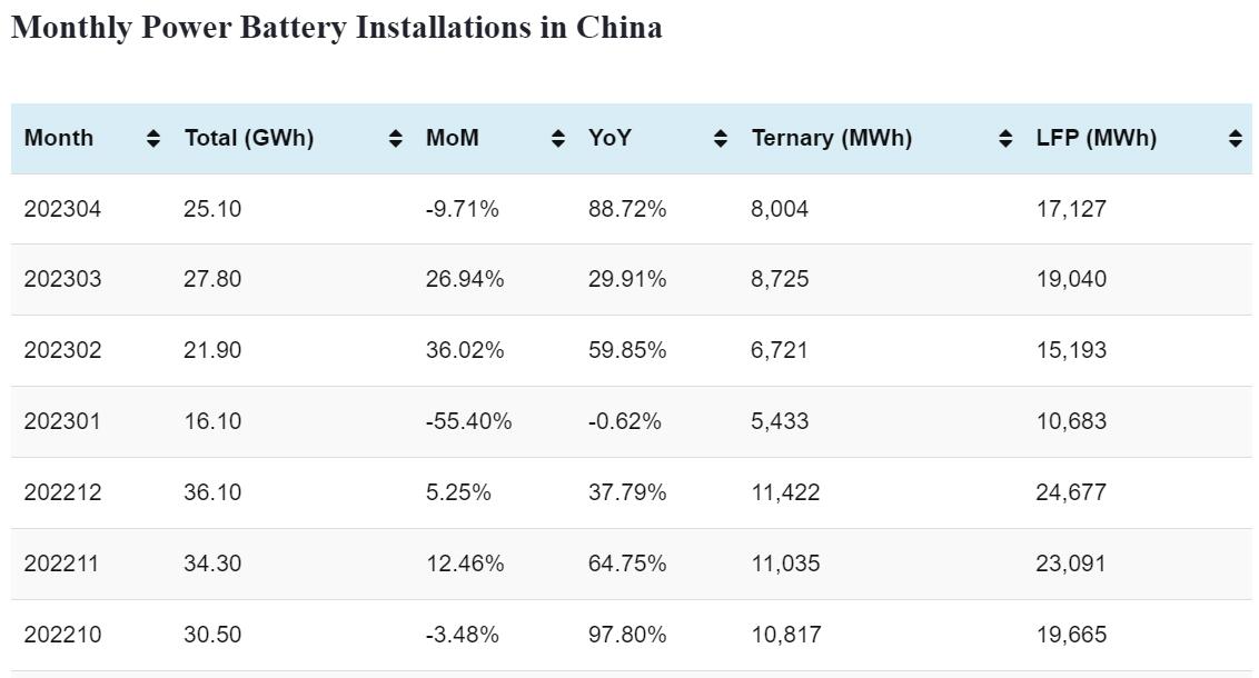 LFP batteries accounted for 26.8 GWh or 68.5 percent of the total, up 36.4 percent year-on-year.