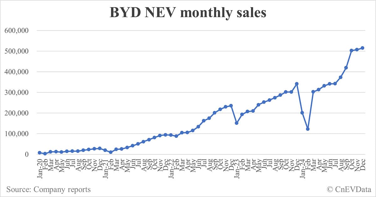 BYD NEV sales in Dec: 514,809