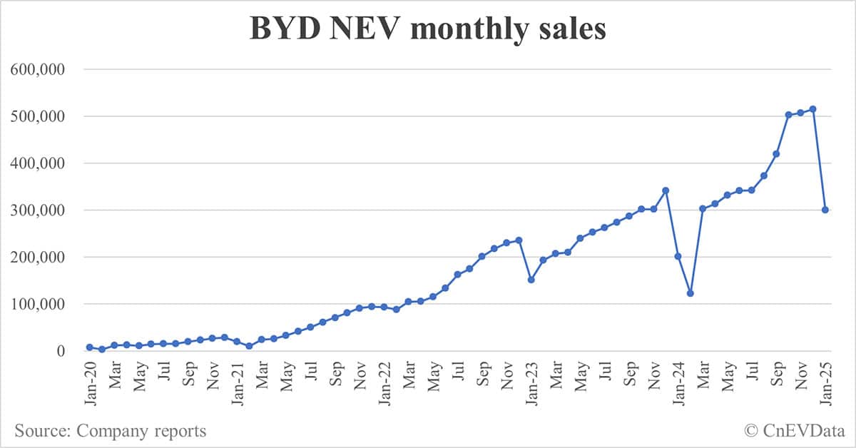 BYD NEV sales in Jan: 300,538