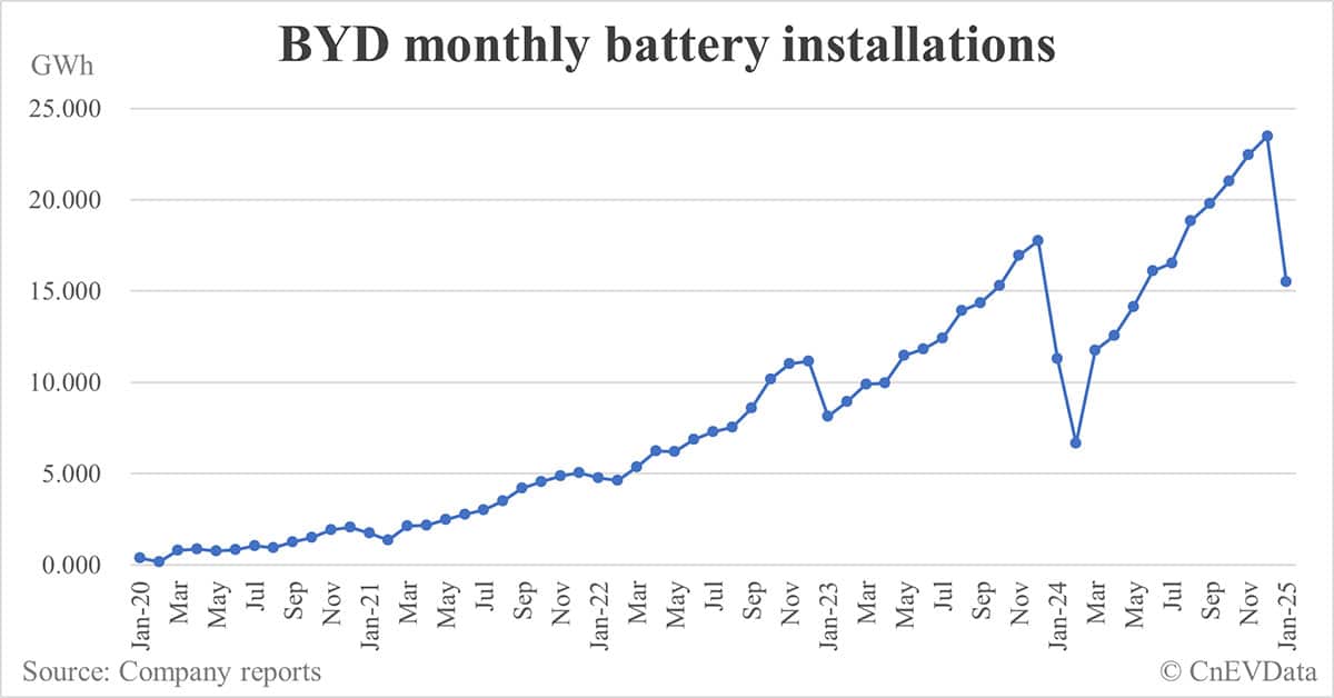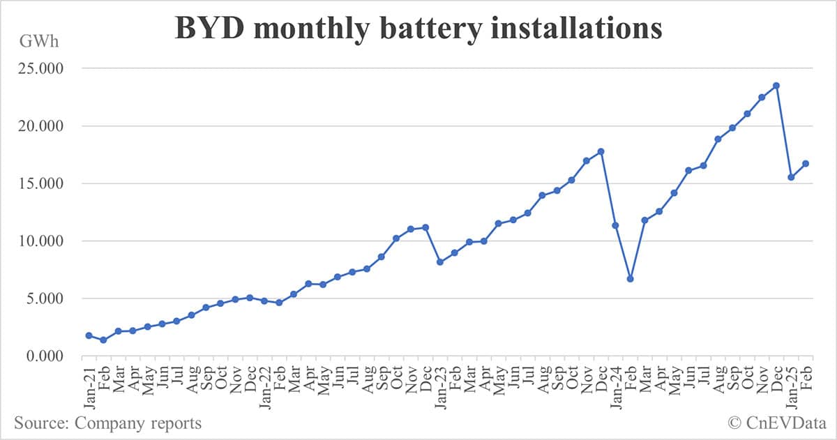 BYD battery installations in Feb: 16.695 GWh