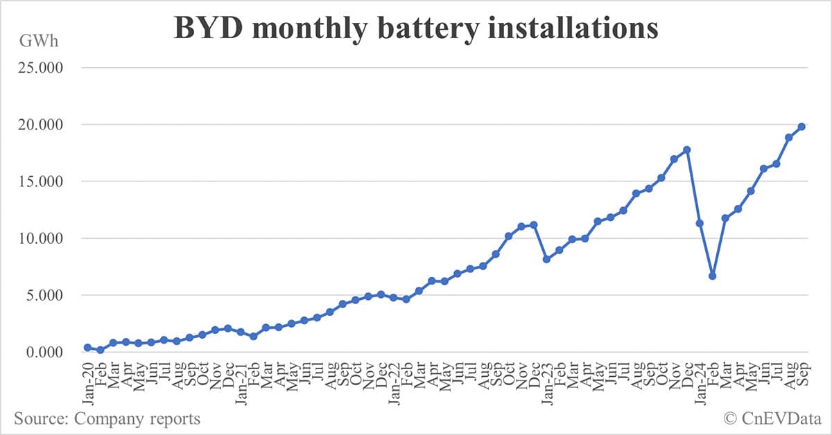 BYD battery installations in Sept: 19.8 GWh