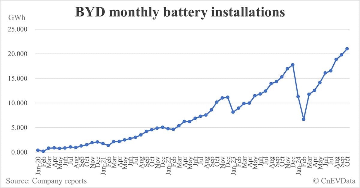BYD battery installations in Oct: 21.018 GWh