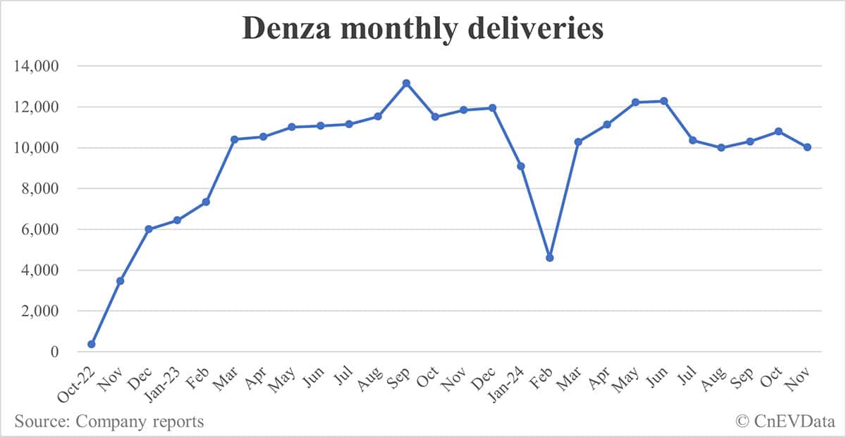 Denza deliveries in Nov: 10,002