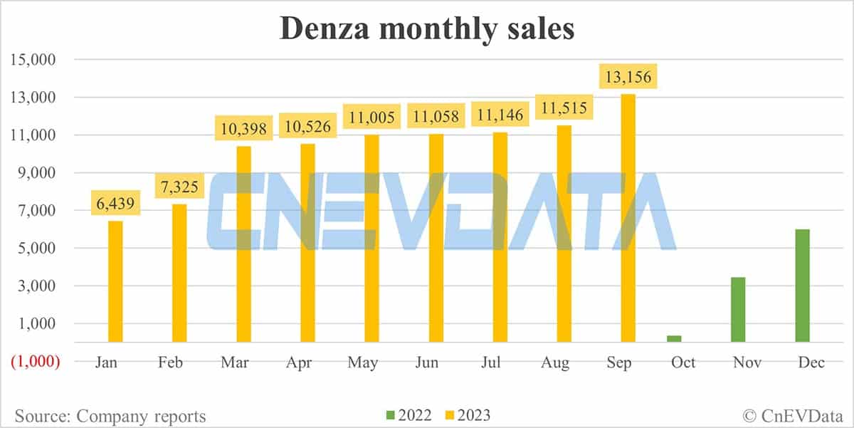 Denza sales in Sept: 13,156