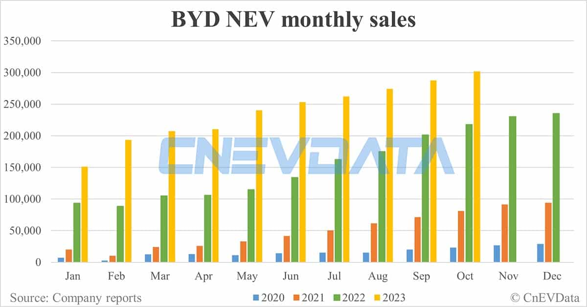 BYD NEV sales in Oct: 301,833